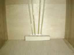 一つは、ココで掲載しているように、Cajonの底から『V』型に二本竹ひごを底だけ の部分を打面に当たるように固定をして、上側は全く固定をせず。