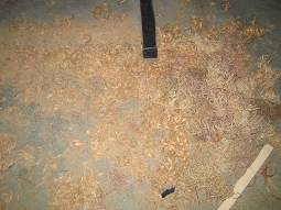 しめた後、布梱包ガムテープで上部先端が跳ね上がらないようにと、浮いている『竹ひご』が浮いている、もしくは打面を叩いてみて、余計なサワリ音がしている場所を止めます。
