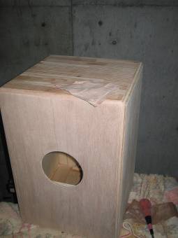 出来上がってみて出来上がりの音に安心した作者でした。これは、安く仕上げたい方や、Cajon制作が初めての方に作って頂きたい行程です。ま、あくまで作りやすい方法ですので、この作り方が正しいわけでもありませんので、後はご自分で考えてね。