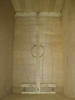 打面の裏の弦は『エレキギター』の弦を流用しました。(アコギやクラッシックギターより長い、この他にピアノ線も流用できる) |