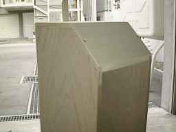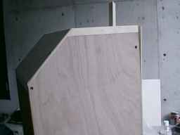 ナナメ天板の取り付けこれが人の手で行う作業で一番気を遣った場所です。(作業工作機械があれば簡単ですが、一般の方は普通持っていないでしょう。)