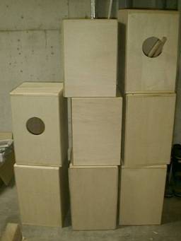 当時は天気がいいので家の前で作っていると、ご近所の方から「大きな巣箱だね〜」とか「棚?」など言われていました(汗)。え?今?大丈夫。ちゃんと『楽器』って認知して貰ってますって、深夜の制作作業の時うるさくても我慢・・・して頂いてます・・・・・。 |
