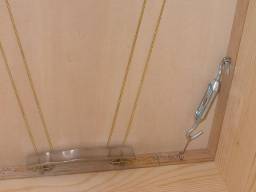 ※変な金具は100円ショップで購入した引き出し用の「取っ手」です。実際はそれほど上手くテンション調整はできません。次回はケチらないでもう少しRの緩やかな金具を使おうと思っています。